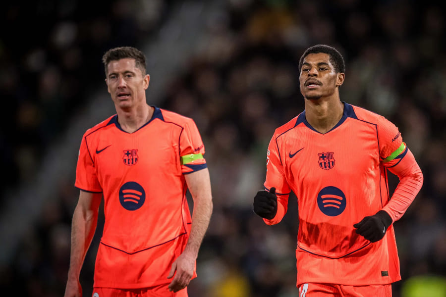 Compo du Barça : J. Garcia ; Koundé, E. Garcia, Martin, Baldé ; Casado, De Jong ; Yamal, Fermin, Rashford ; Lewandowski.